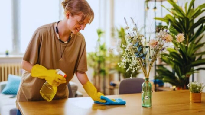 - Clean, disinfect, and polish kitchen and bathroom fixtures and appliances